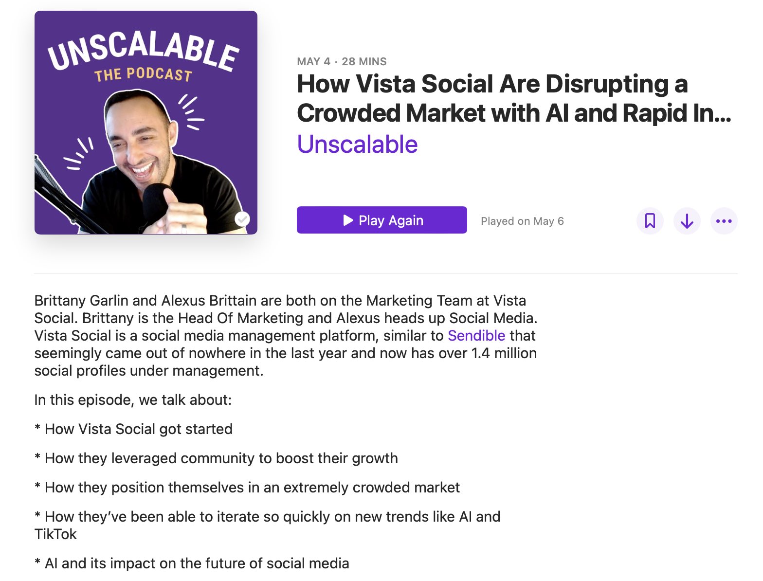 In the episode titled “How Vista Social are Disrupting a Crowded Market with AI and Rapid Innovation,” I discussed how we infuse authenticity, relatability, and human connection into every aspect of our content.