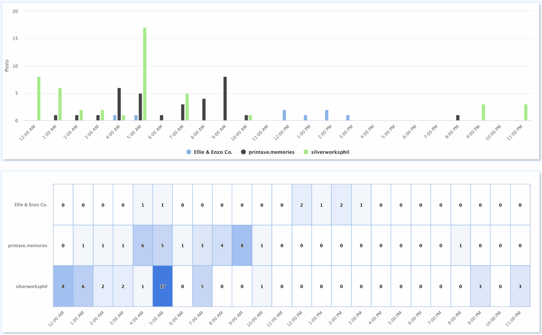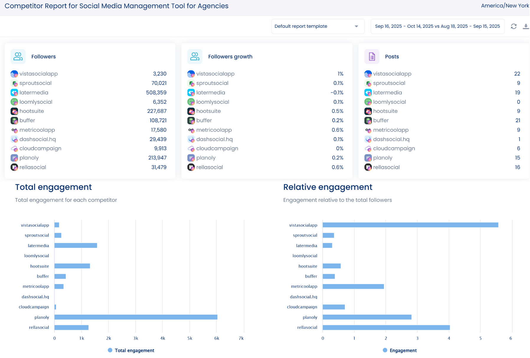 You’ll see comparisons across metrics such as engagement rate, follower growth, and content performance.