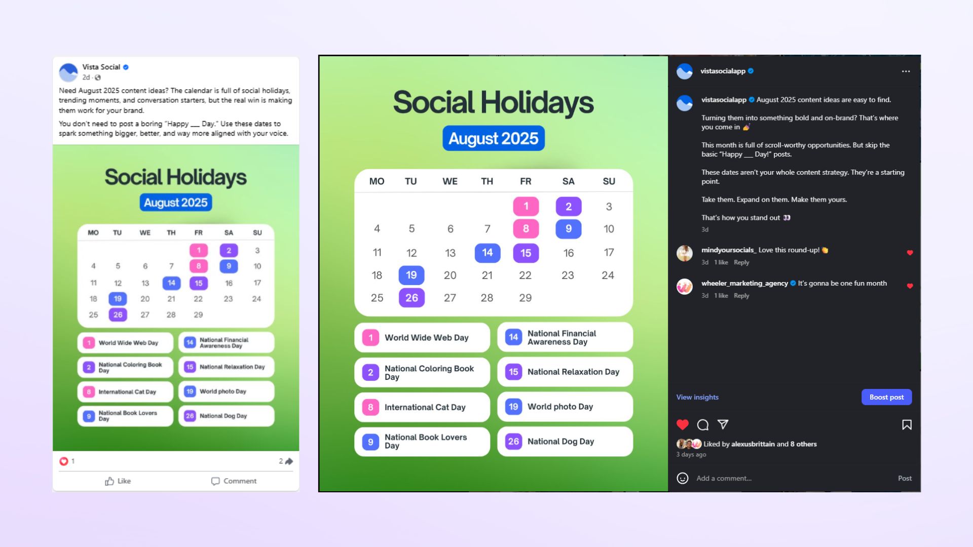 Real example: You notice that a tip about Instagram hashtags you posted last summer got tons of engagement. You can duplicate that post, update the visual, tweak the wording to feel current, and give it another life.