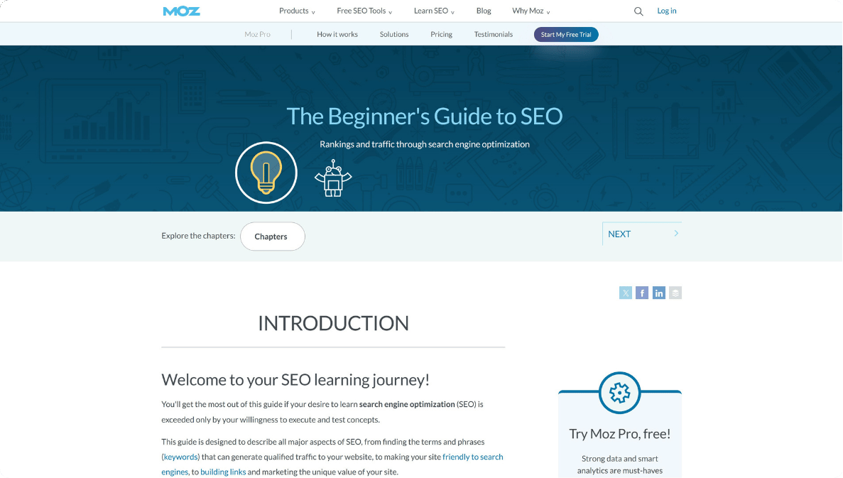 Moz’s SEO guide teaches search fundamentals that always work. They cover things like finding keywords, writing good content, and getting links.