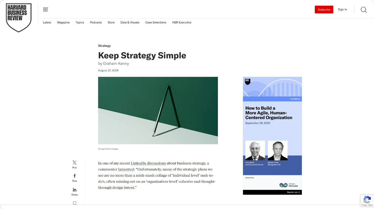 Harvard Business Review’s strategy guide teaches business basics that work for any company. They focus on key ideas like setting goals, studying markets, and tracking success.