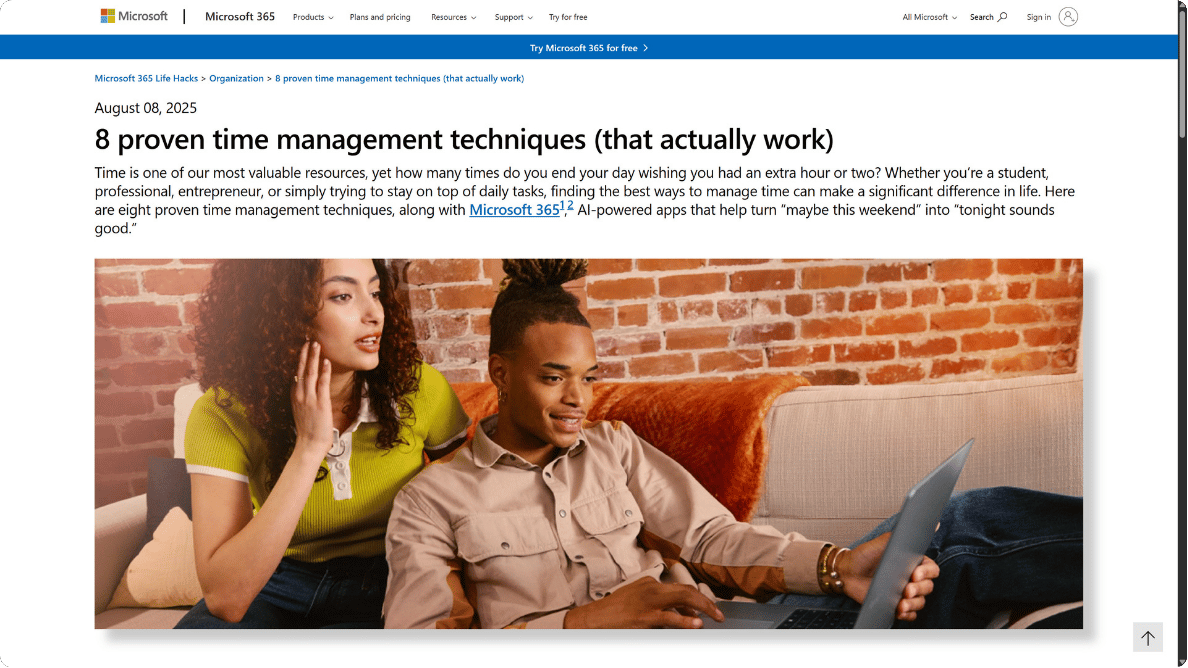 Microsoft’s productivity guide addresses workplace efficiency challenges that persist regardless of technology trends. Their guide covers time management tips, better work flow, and productivity ideas that help any worker.