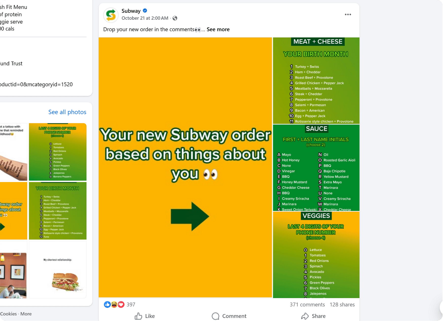 Subway lets each franchise manage its own social media to connect with local fans. As part of this strategy, each individual location highlights promotions, new menu items, and partnerships with local influencers.