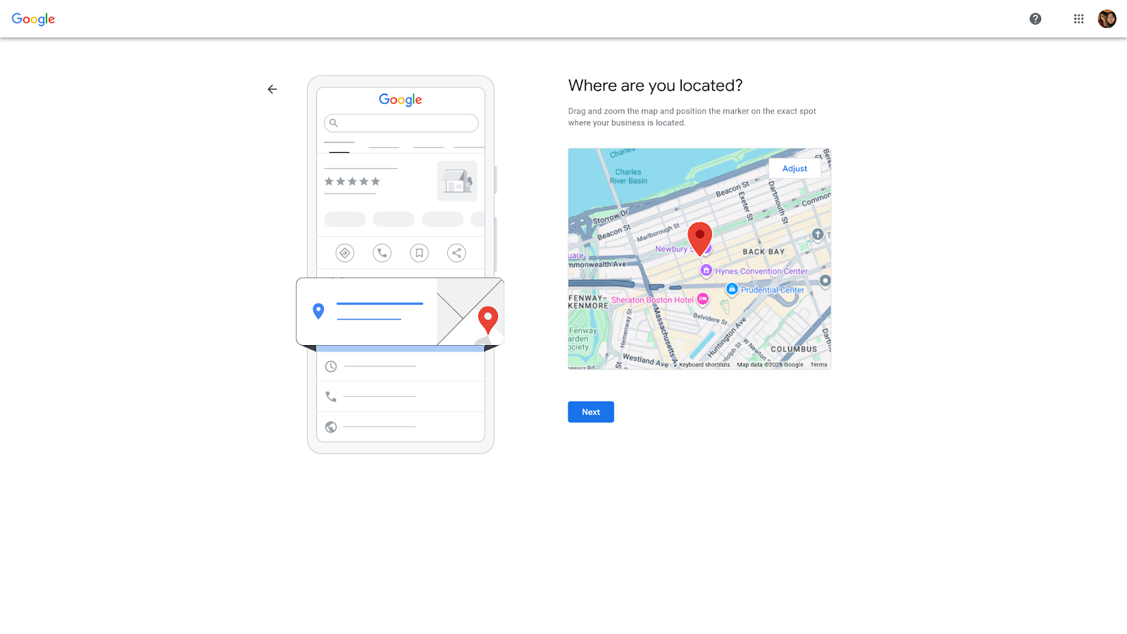 Google should then ask you to specify in their maps your exact location, which is great for businesses with a physical location.