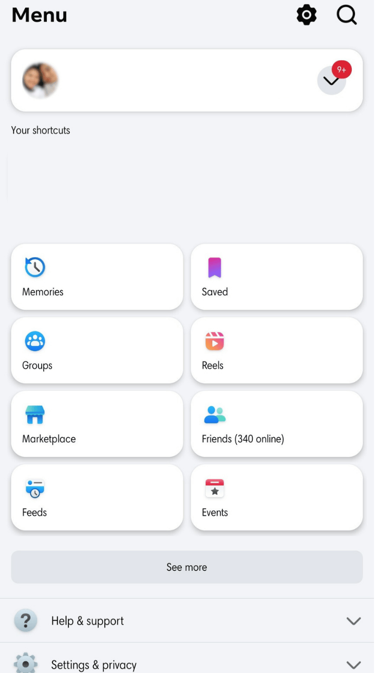 Once logged in to your client’s Facebook account, tap on the profile photo on the menu and select Groups.