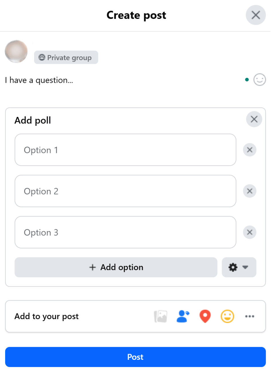 If your client wants to create Facebook polls, they can do so inside Facebook Groups. Meta has removed the Poll sticker from Stories, and while some regions may offer limited polling tools on Facebook Reels, these options are not widely available or consistent across all Pages.