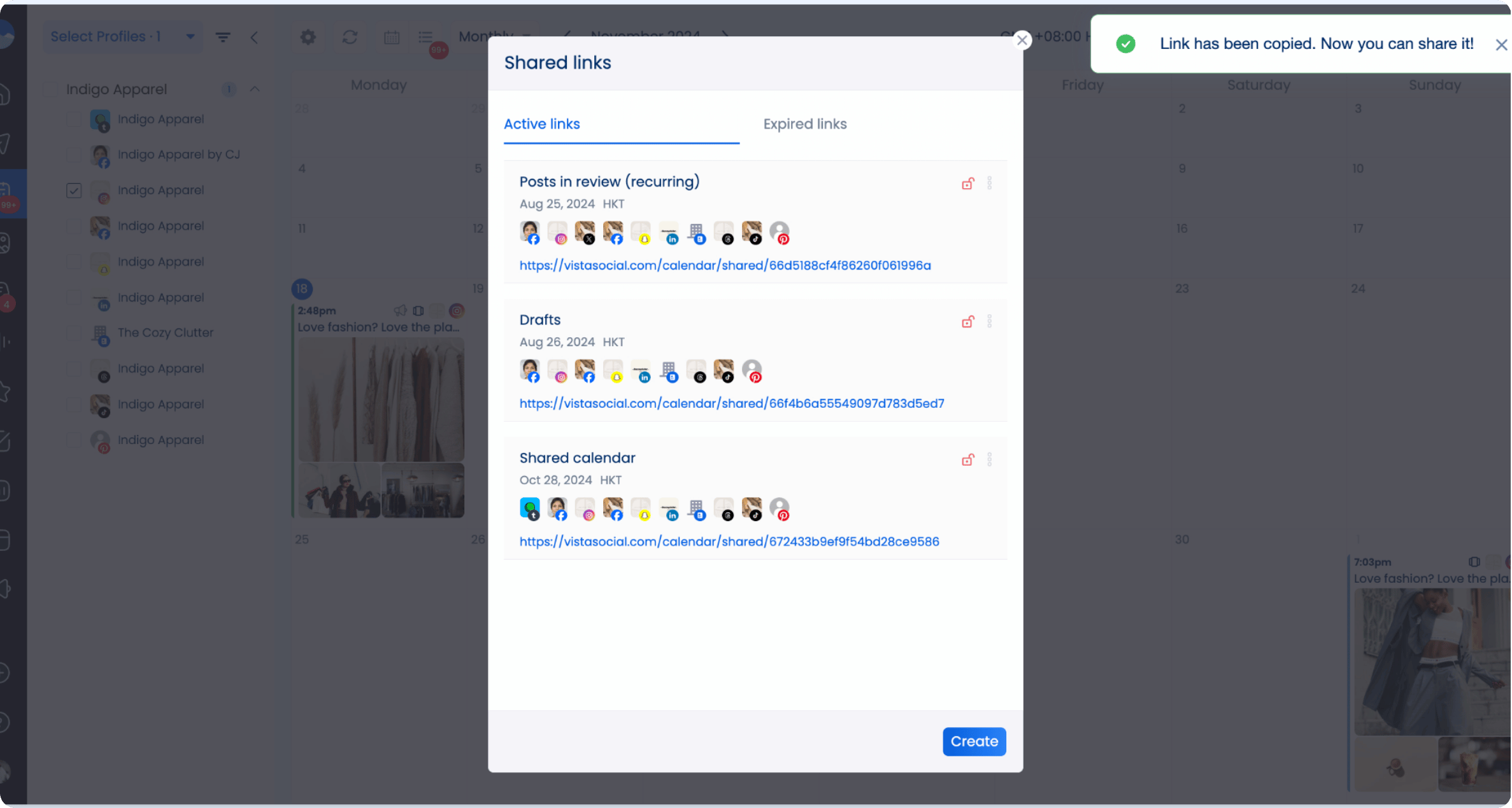 You can create and copy the link for the content you put together in Vista Social and share it with external users. Users don’t even need to sign in to approve content from the Shared Calendar.