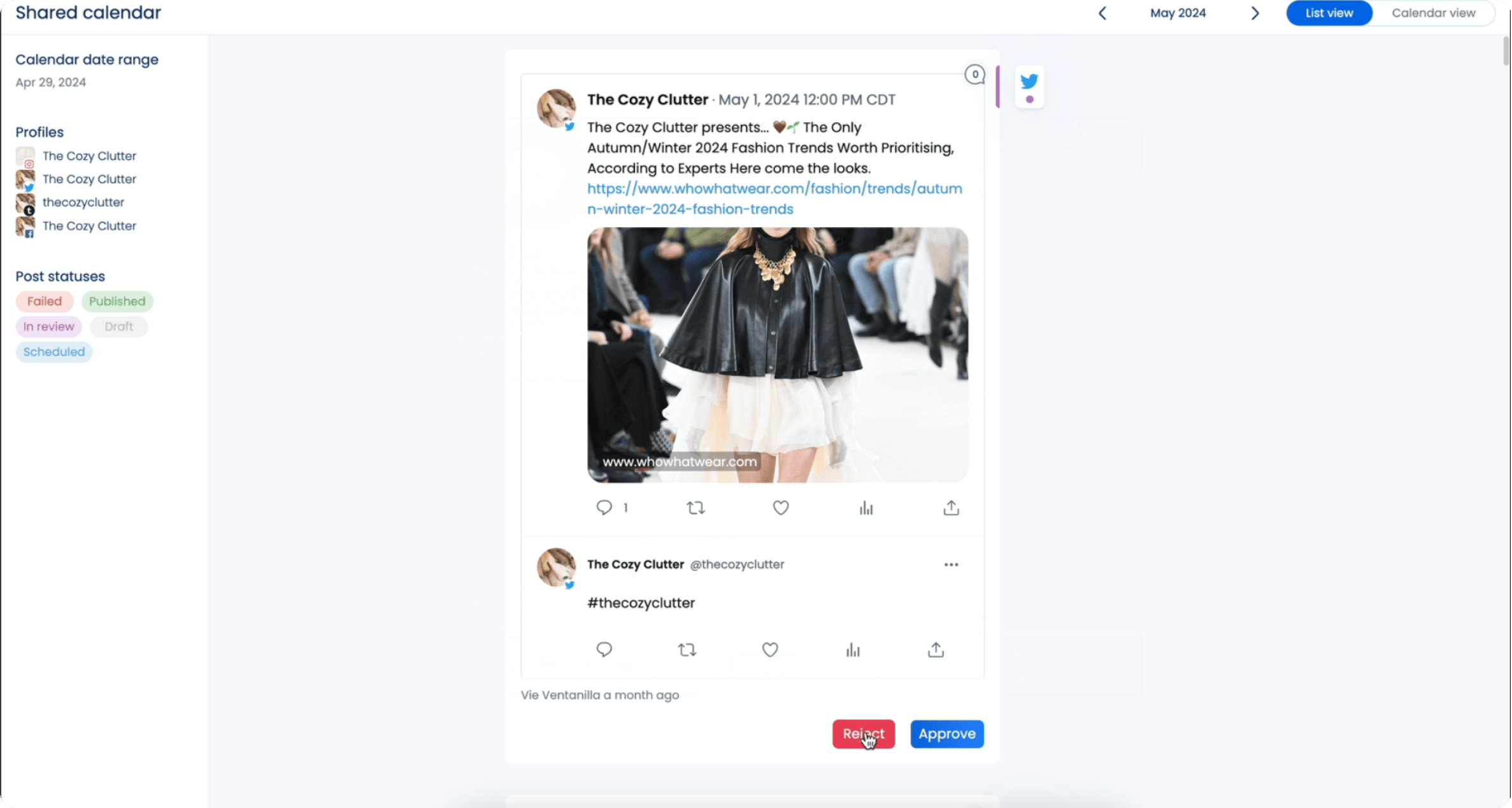 Vista Social lets you set up automated single or multi-stage approval workflows so you can easily share posts for review and give approvers access to your Shared Calendar.