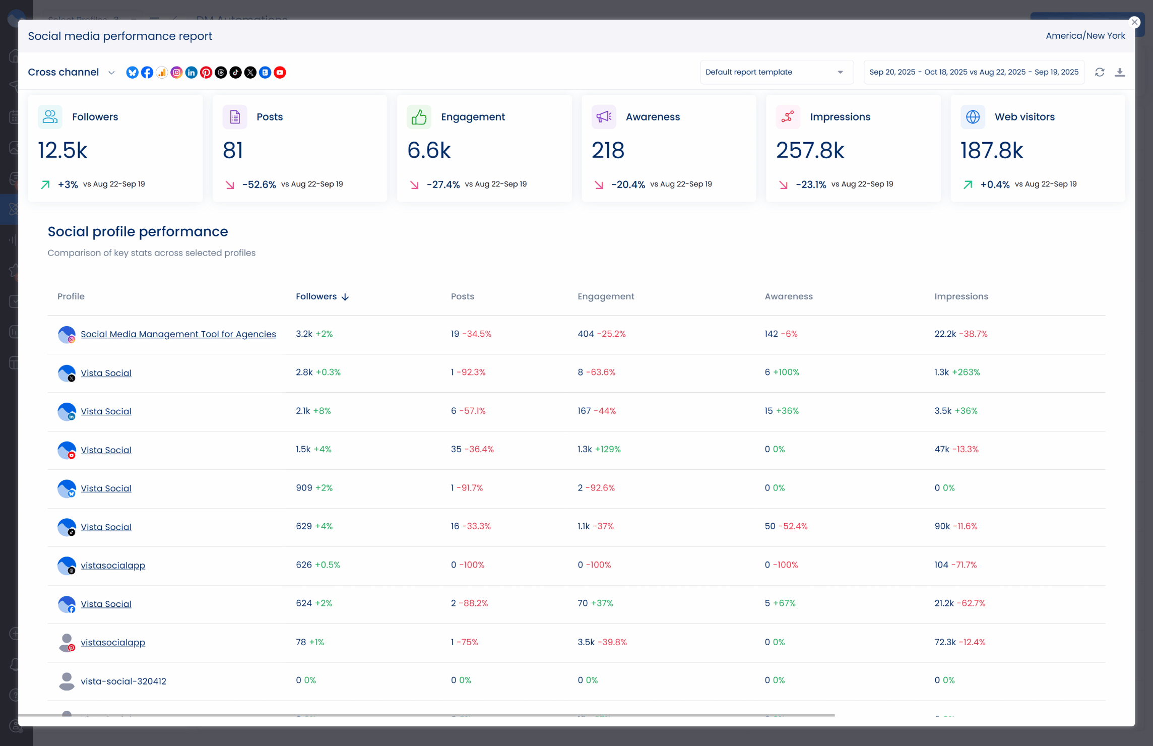 Understanding how your campaigns perform starts with the right insights at your fingertips. With Vista Social’s analytics features, you can easily track how your marketing efforts are doing across all your social platforms.