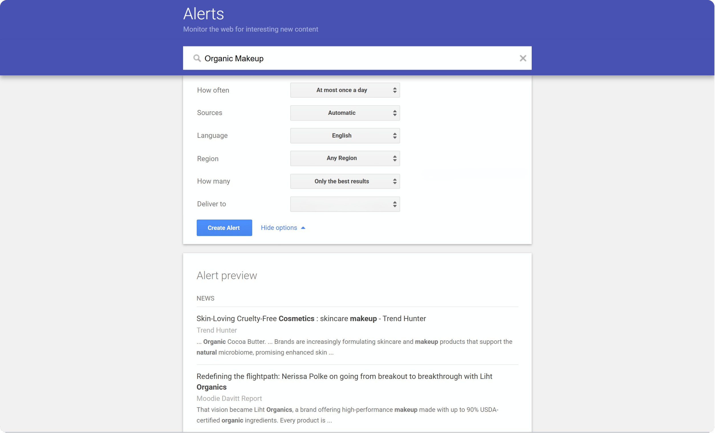 Best for: Small brands or solo marketers who want a free way to monitor mentions and keyword appearances (low-volume).