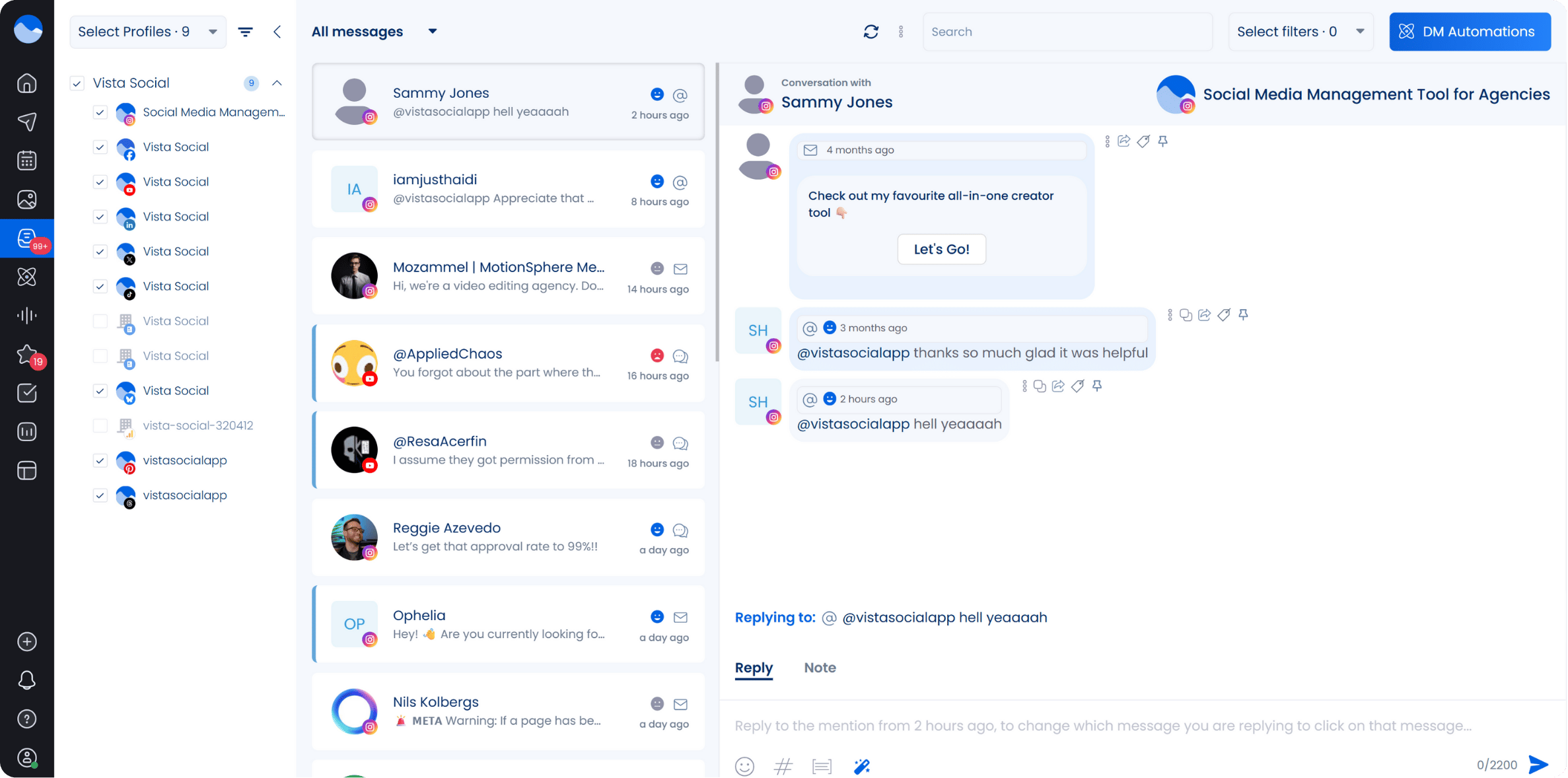 With tools like Vista Social, you can respond directly to mentions and messages, making it easier to manage engagement and reputation from a single place.