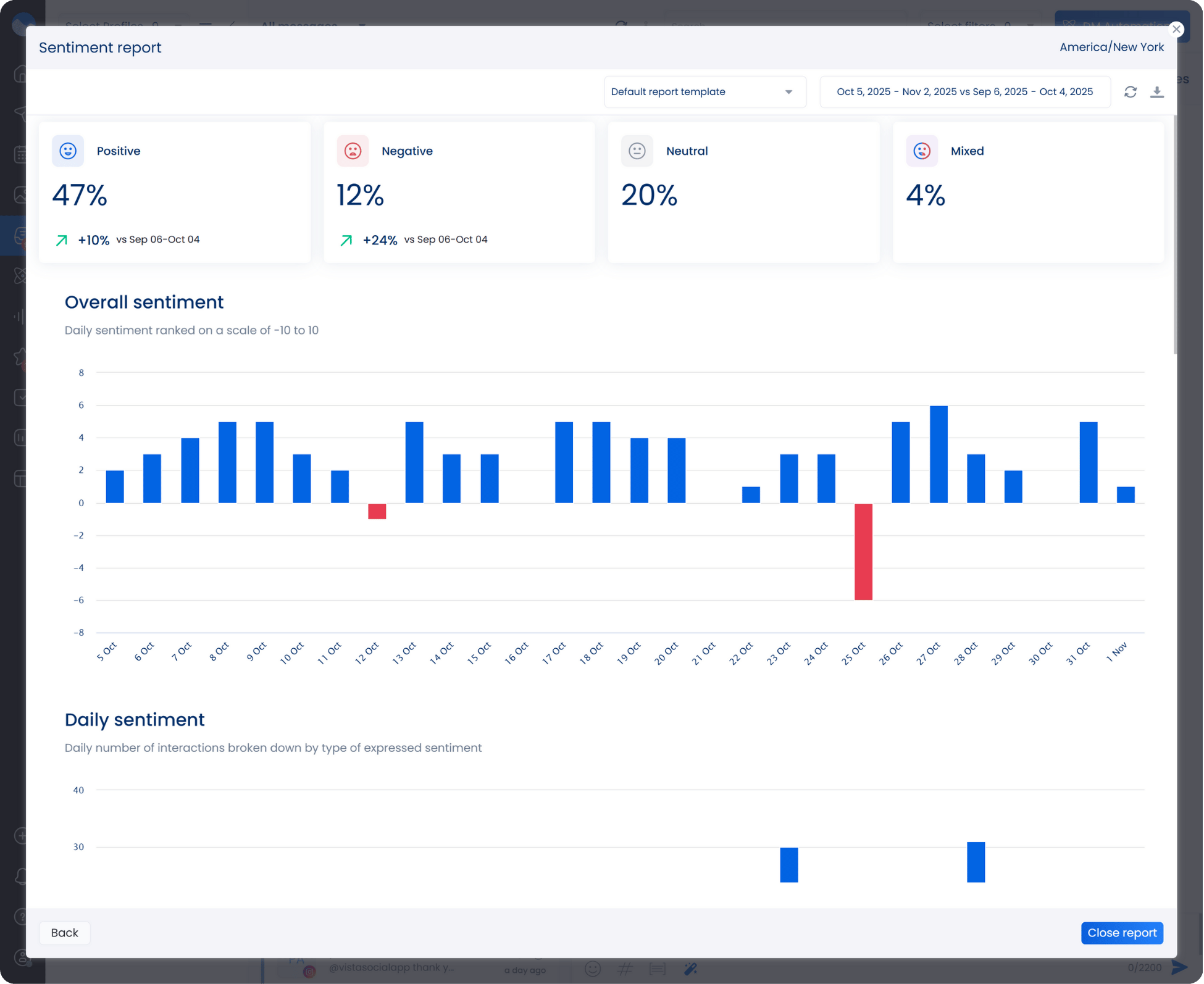 Vista Social also makes insights easy to interpret. With built-in sentiment analysis, you’ll understand how people feel about your brand at a glance.