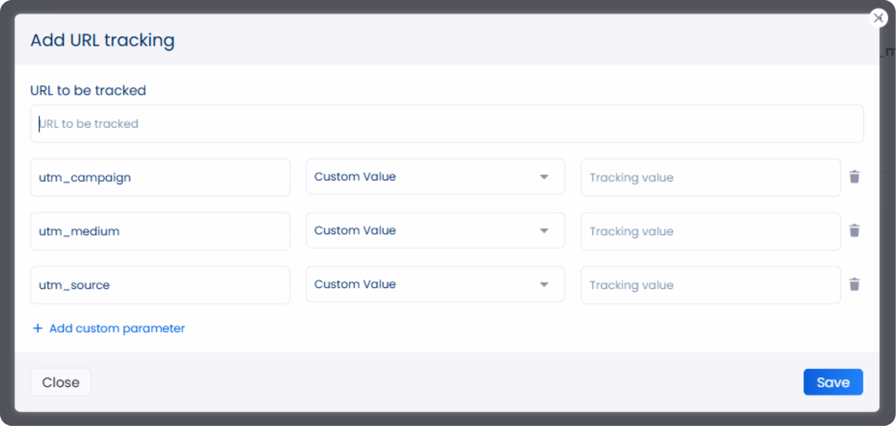 6. (Optional) Add custom parameters by typing a parameter name (up to 100 characters) and picking the value from the dropdown