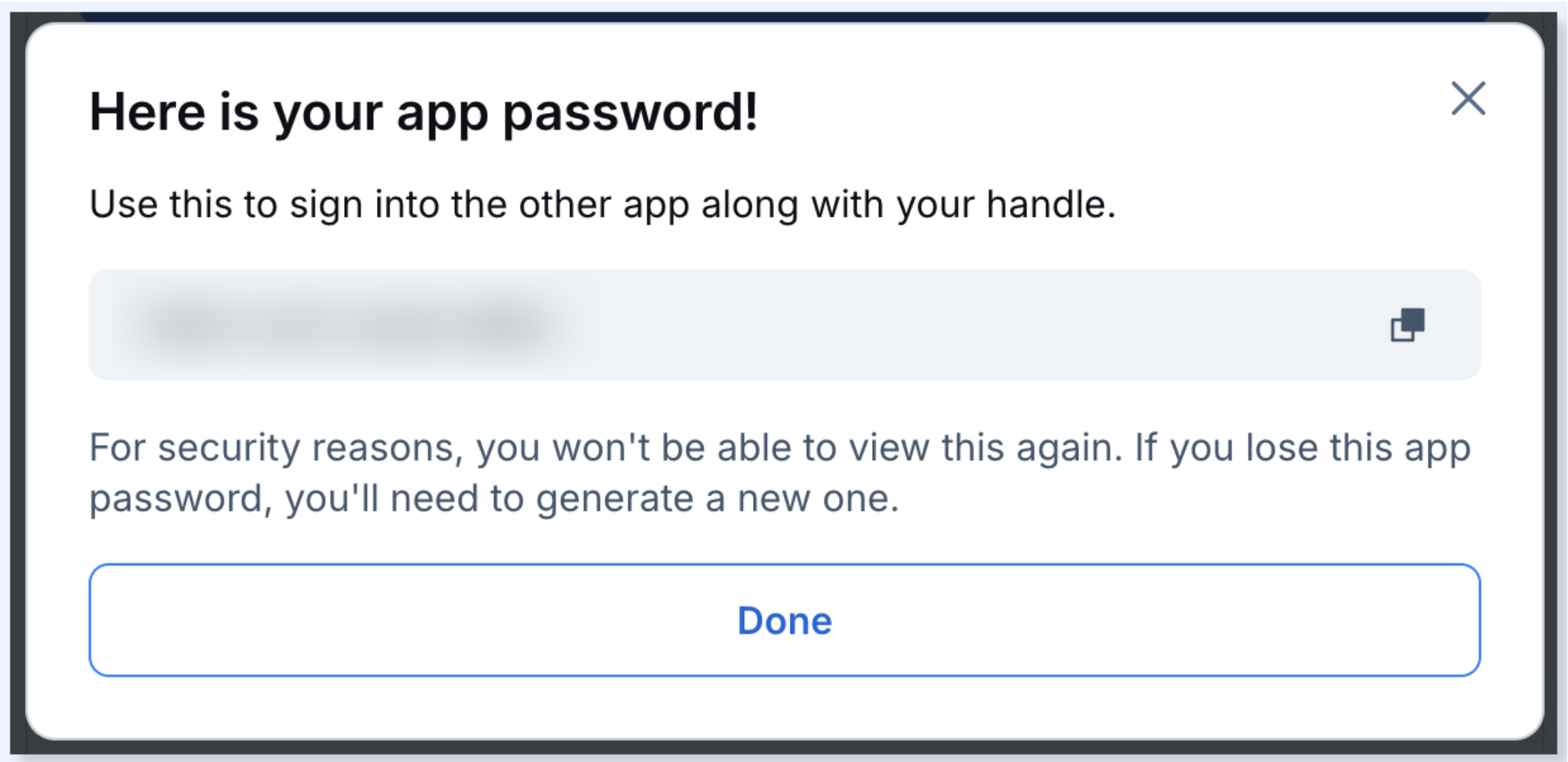 Keep in mind that this is not your password yet, but rather a name for your app password.