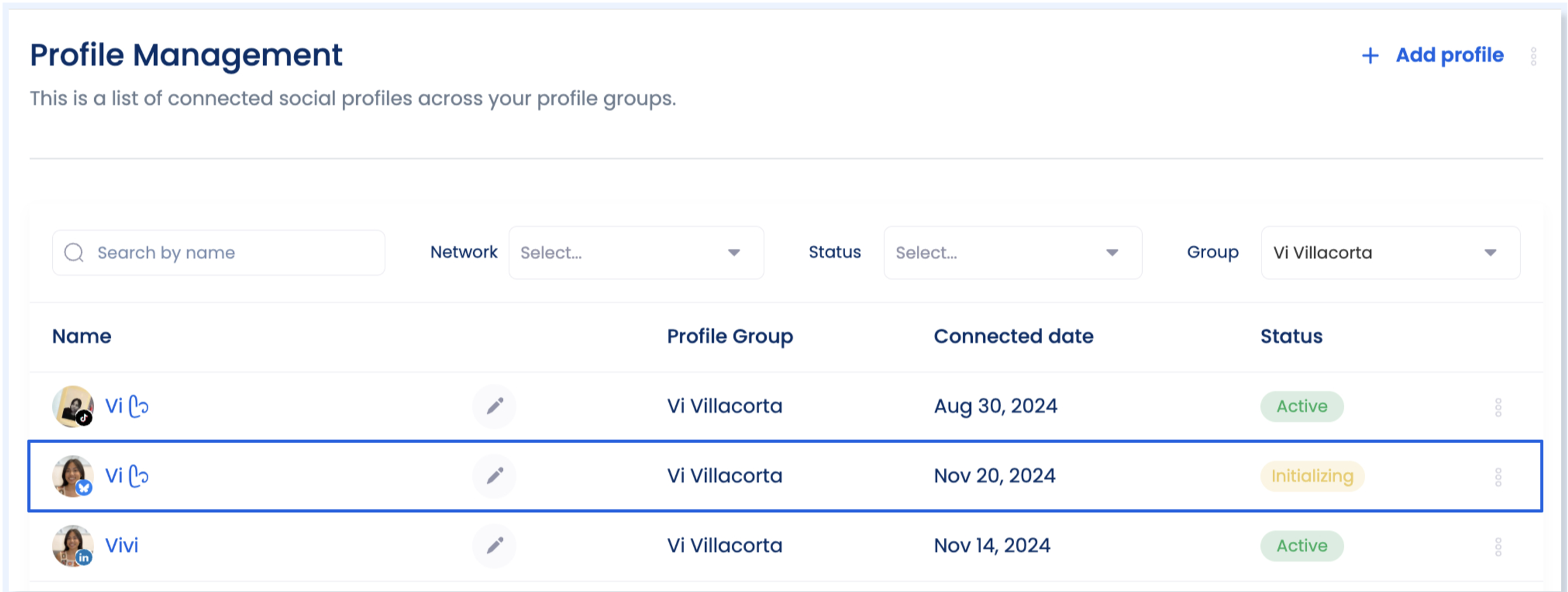 8. Once the profile is successfully connected you will get a notification and the profile will appear under Profile Management.