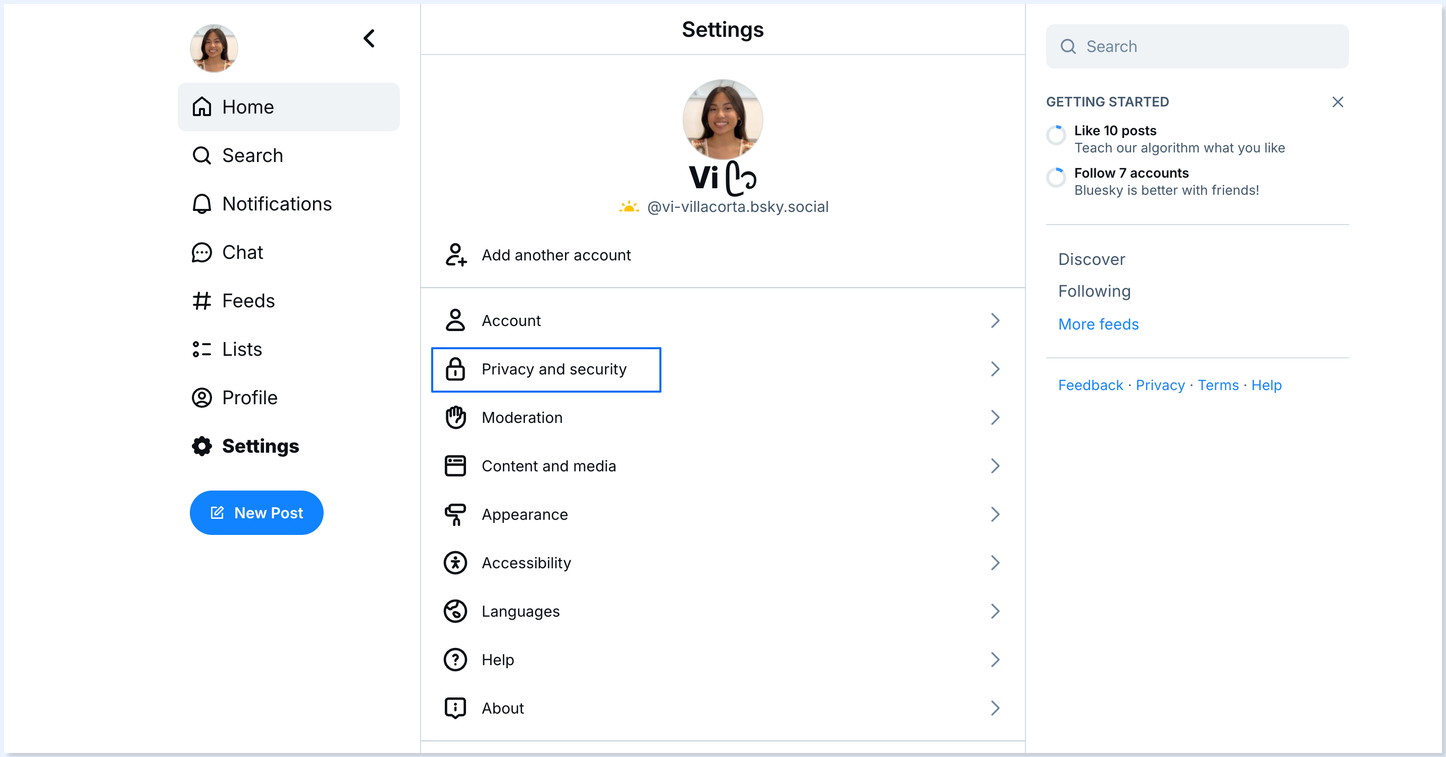 5. Keep your Vista Social tab open, and switch to your Bluesky tab. Click the profile icon on the left-hand side to access your profile page.