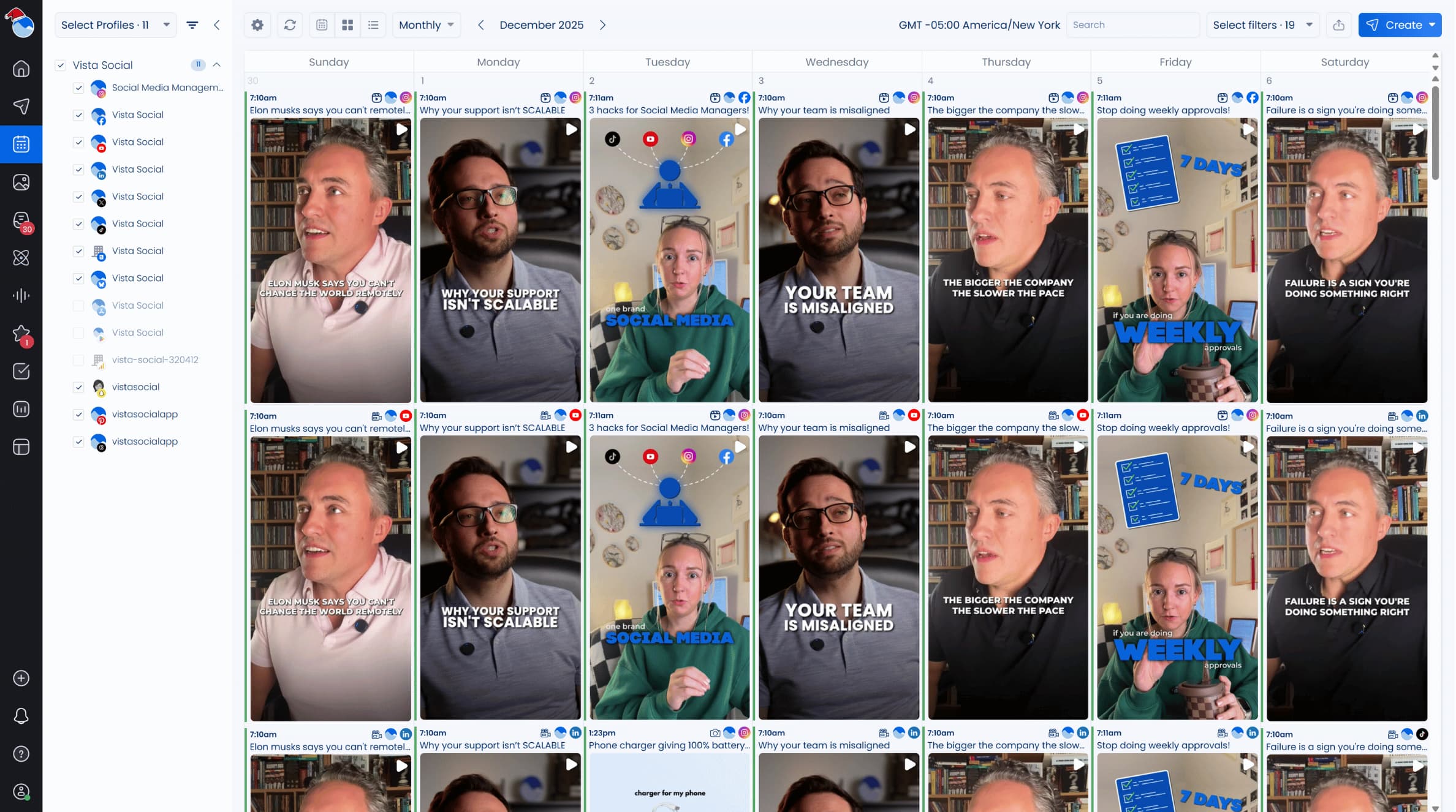 Content planning is also more visual in Vista Social. Its social media calendar shows scheduled posts across all platforms in one place, making it easier to spot gaps and adjust timing for better reach.