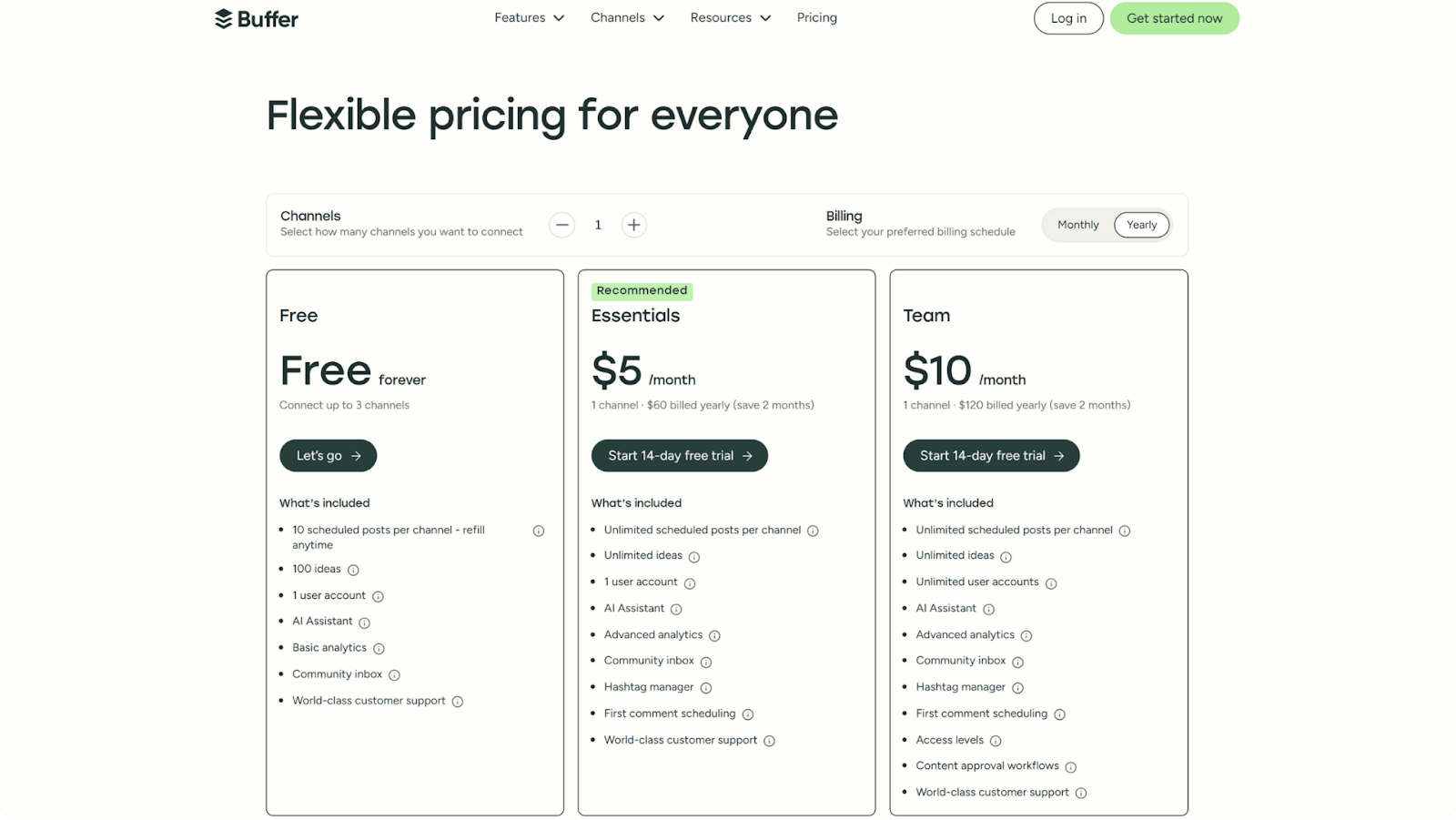 Get Started NowBuffer also allows team collaboration, but some of its key features are available only on higher-tier plans. On the Team plans, you can add unlimited users and set access levels for each social channel.