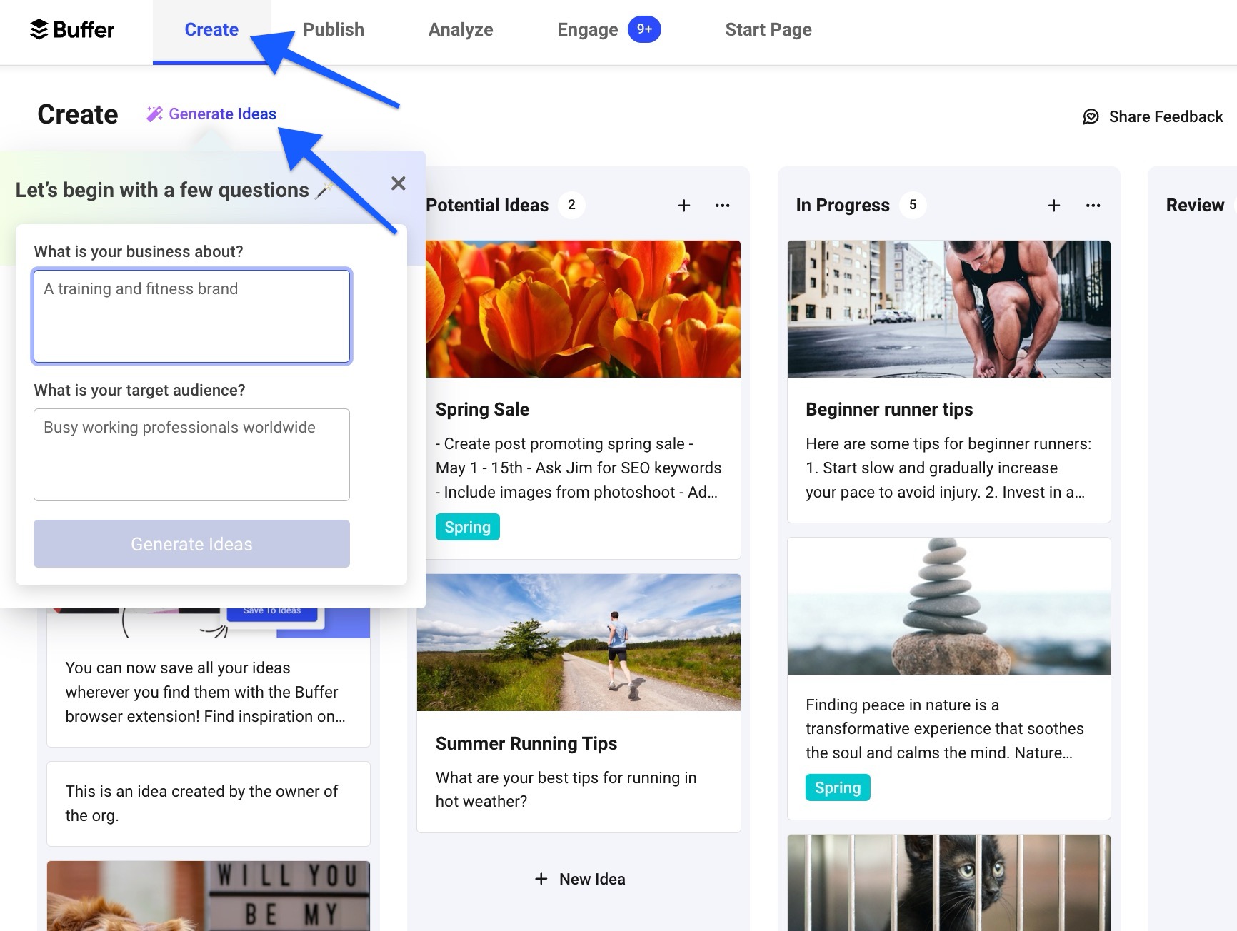For example, you can set up workflows to capture content ideas from email newsletters, RSS feeds, or social interactions and automatically add them to Buffer’s scheduling queue.